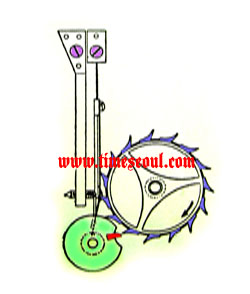 [±×¸² 9] 1781³â Å丶½º À̾Ȼç¿ì(Thoms Earnshow:1749-1829)¿¡ ÀÇÇØ¼ ¹ß¸íµÈ Å©·Î³ë¸ÞŸ Å»Áø±â(Spring Detent Escapement:ÀÚÀ¯ Áøµ¿½Ä Å»Áø±â)ÀÇ °³·®Çü.