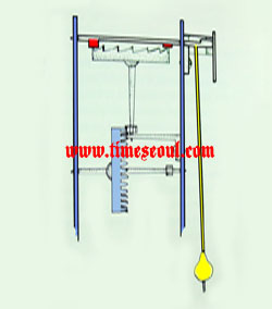 [±×¸² 8] È£ÀÌÇ°¡ ¹ß¸íÇÑ ÃÖÃÊÀÇ À¯»ç¿Í ¹ë·±½ºÀÇ ±¸Á¶ÀÌ´Ù. ÀÌ ±×¸²À» º¸¸é ±×´Â ¹ë·±½ºÀÇ È¸Àü¿îµ¿À» ÀÚÀ¯Áøµ¿À¸·Î ¸¸µé±â À§Çؼ Áß°³Â÷¸¦ ÷°¡ÇÏ¿´À¸³ª °á°úÀûÀ¸·Î ¸¶ÂûÀÌ Áõ´ëµÇ¾î ½Ã°è°¡ ÀÚÁÖ ¸ØÃß¾î¼ ´Ù½Ã Èçµé¾î ÁÖ¾î¾ß ÀÛµ¿À» ÇÏ¿© ¿µ±¹ÀÇ µåÇÔ ¹Ú»ç¿¡ ÀÇÇØ¼ È£µÈ ºñÆÇÀ» ¹Þ¾Ò´Ù.